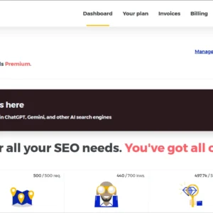 Términos: $10 USD x 1 mes. Comprando este producto se le brindará acceso a Dinorank Premium por 30 días (No confundir con IA Dinorank que es un producto distinto). Método de acceso: Usuario y Contraseña, u otros métodos que SEO Conjuntas vea por conveniente.